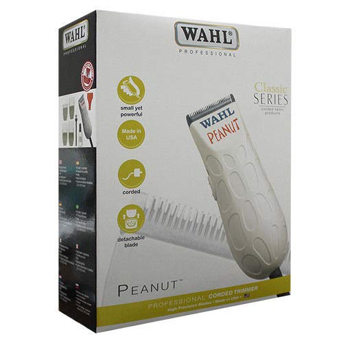 From Wahl Professionals commercial grade line of products, the Peanut Clipper/Trimmer is intended for professional use only and is designed to deliver the sharp performance that experts demand. With its compact size and sleek design, this stylish trimmer offers an appealing aesthetic in addition to top-notch precision and function. All the power of a full size clipper in a miniature size that fits in the palm of your hand. For your convenience, the Peanut comes with all accessories required for use. Package includes the clipper/trimmer, (4) attachment comb cutting guides (1/8 inch, 1/4 inch, 3/8 inch, and 1/2 inch), oil, cleaning brush, instructions, and red blade guard. The Peanut Clipper/Trimmer (8655) measures 4 inches long and weighs 4 ounces. This product features a 7 foot, professional grade, chemical resistant cord, included. Trimmer features a 2068 1001 blade and operates at 120 volts/60 hertz. PLEASE For sale and use in the U.S.A. only. Also includes a small neck duster for cleaning small hairs after use.
