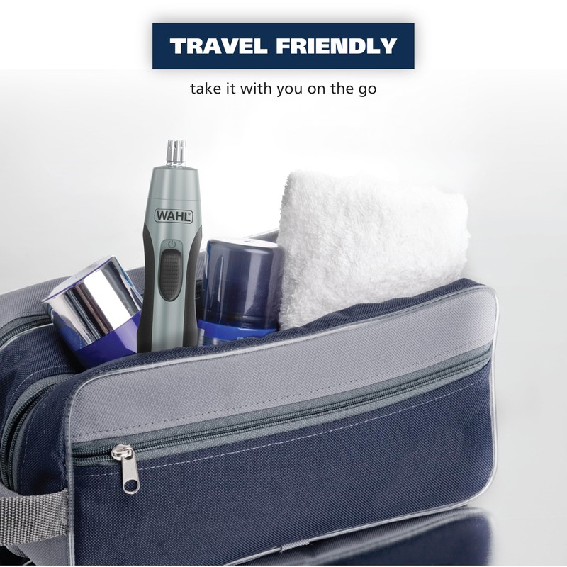 The Wahl ear and nose hair trimmer for men is designed to deliver precise, pain-free results. Equipped with a precision rotary trimming head featuring 360-degree rotation, this trimmer for men effectively removes unwanted ear and nose hair with ease, ensuring no spot is missed. Its rotary trimming head design provides a thorough grooming experience without discomfort. Experience effortless grooming with a trimming head that seamlessly fits inside the ear and nose cavity, providing a pain-free grooming experience. This design makes it the perfect ear and nose hair trimmer for men, allowing for a comfortable and efficient trim every time. Maintaining hygiene has never been easier. This Wahl trimmer features a removable and rinseable head, allowing for quick and easy cleaning. This ensures your grooming tool stays fresh and sanitary, ready for your next use. Enjoy a secure and comfortable grip with the ergonomic no-slip grip. This feature provides precise control and enhances your grooming experience, making it the ideal hair trimmer for men whether you're at home or on the go. The cordless AA battery-operated power offers maximum convenience. Use it anytime, anywhereeven while travelingwithout the hassle of cords or charging (battery is not included). Operating your nose trimmer is a breeze with the easy one-button on/off functionality. Whether you're trimming nose hair or ear hair, this simple operation ensures a hassle-free grooming experience. Wahl proudly offers a no pull, no pain guarantee, ensuring a smooth and comfortable trim every time. This ear and nose hair trimmer for men is an essential addition to every mans facial hair trimmer set, designed for effortless use and reliable performance. Note: We test our Wahl nose hair trimmers for men for cutting performance prior to packaging with a hygienic fiber. We do our best to clean the product to remove any testing particles, but it is possible a few may remain. They are not hair and can simply be wiped off.
