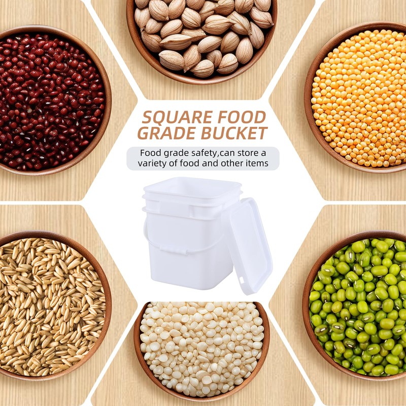Waikhomes 3 gal Food Grade Plastic Bucket Pail Container with Lid/Handle (Pack of 4)