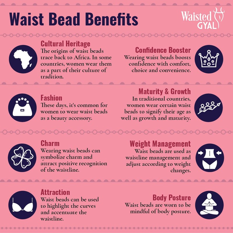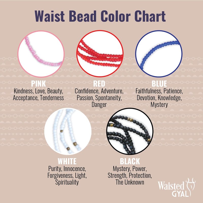 - Increase Body Positivity - Waisted Gyal presents authentic African waist beads crafted in Ghana Africa. Traditional waist beads increase confidence and body positivity. Perfect for women of all shapes, and sizes. Choose from a selection of colors.