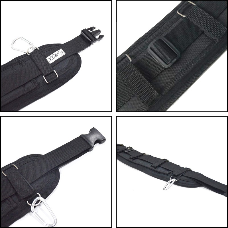 • Fastening band is Velcro type and can be opened and closed in 5 places (3 fixed places + 2 free). Comes with a D-ring on the left and right and detachable tool hanging hook, making it very convenient for hanging a variety of tools