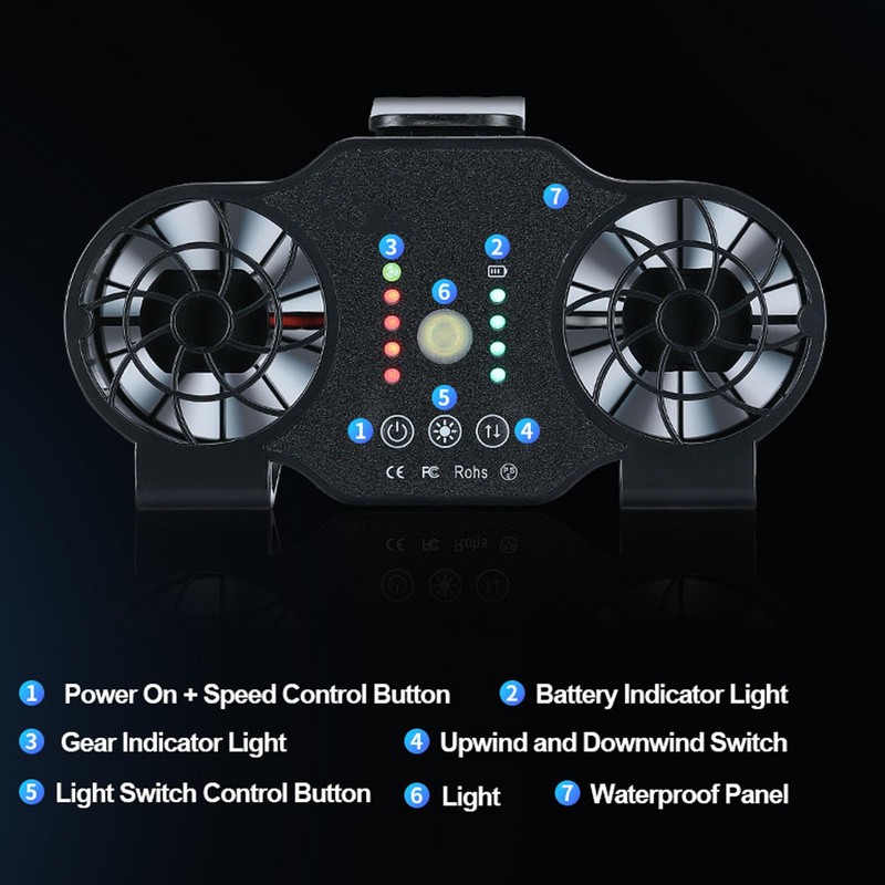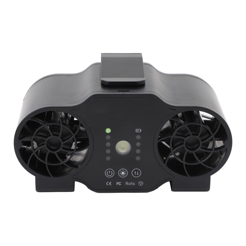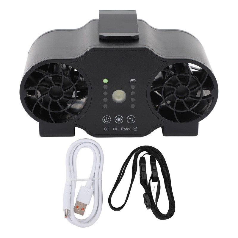 - Strong Wind: USB waist fan can blow 10m/s of wind, 40% more powerful than other portable waist clip fans, will not overheat even if it is blown for a long time. Short press the light key, you can turn on the lamp for auxiliary lighting, can be used for 10H under full power.