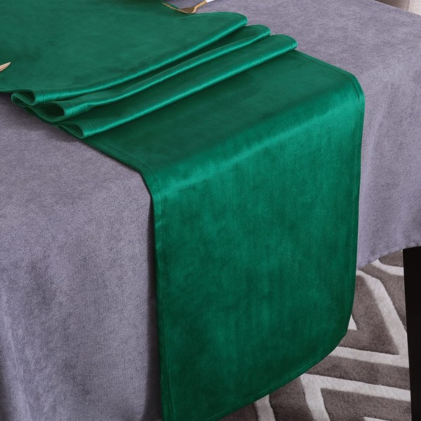 WAITER TREE Velvet Table Runner Washable Dresser Scarf Luxury Rustic Farmhouse Table Runners for Home Dining Coffee Table (Emerald Green, 14 x 51 inch)