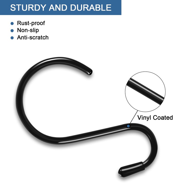 - Rubber Coated S Hooks: Our large s hook surface are coated with vinyl rubber, which is rust-proof, non-slip and anti-scratch, you don't need to worry these hooks would scratch your jeans or clothes when using it, and the s hooks would not fall off.