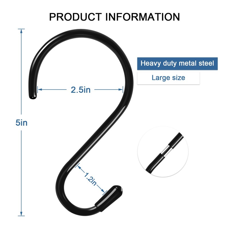 - High-quality Material: Our large vinyl coated heavy duty s hooks are made of thick metal steel with vinyl coated surface, which is strong to hang heavy items and not easy to deformed. Great for indoor and outdoor use.