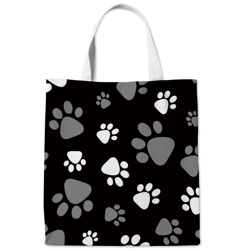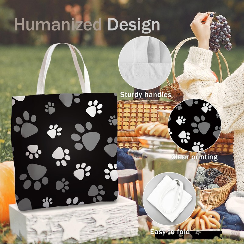 WAITPI Cute Dog Paw Mom Canvas Tote Bag Gifts for Lovers, Black Puppy Pet Aesthetic Canvas Reusable Tote Bag with One Dog Paw for Shopping