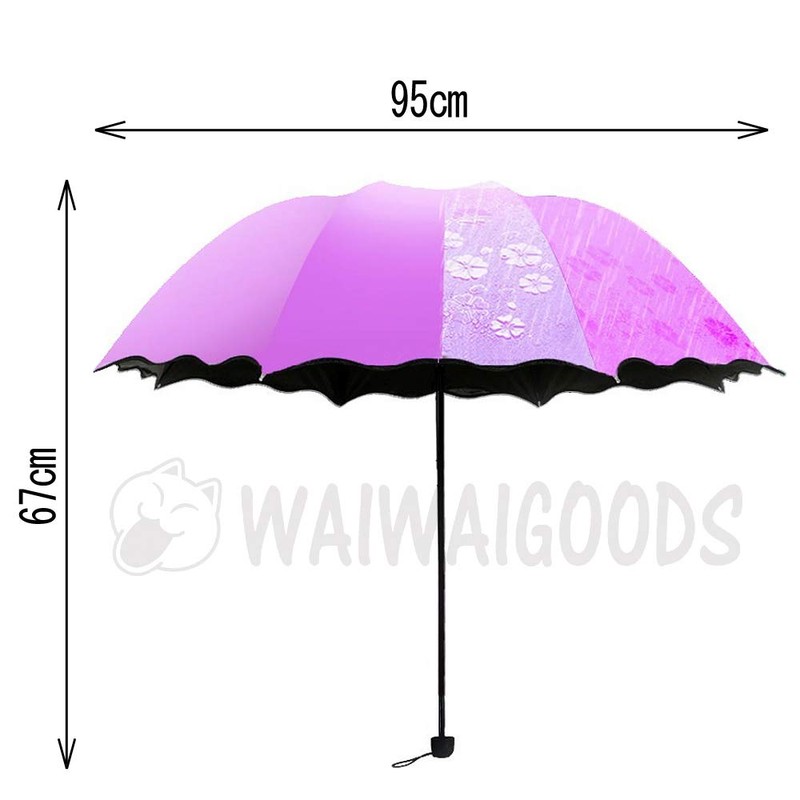 - This folding umbrella can be used as a sun or rain umbrella with an impressive floral pattern that only pops out when wet in the rain