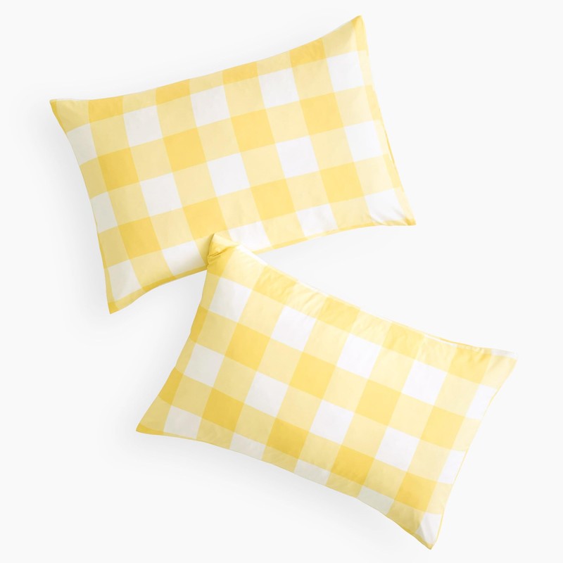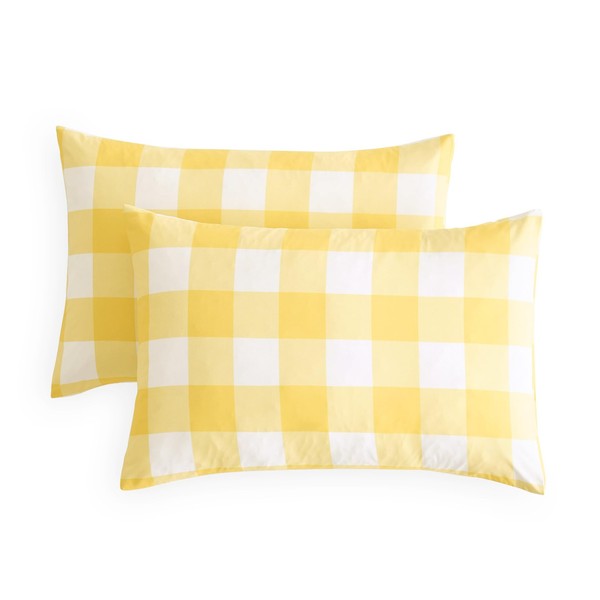 Wake In Cloud - Plaid Pillow Cases, Buffalo Check Gingham Checkered Farmhouse, Set of 2 Soft Pillowcases Pillow Shams Covers, Yellow White, Standard Size 20x26 Inches
