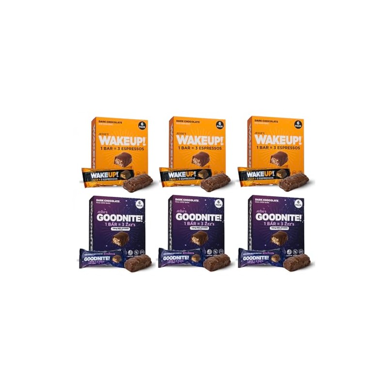 WAKE UP! + GOODNITE! VALUE PACK – 6 Cartons (36 Bars) – 18 WAKEUP! Bars + 18 GOODNITE Bars – AM/PM Functional Snack Duo – Vegan, Gluten-Free, Kosher – Focus by Day, Rest by Night