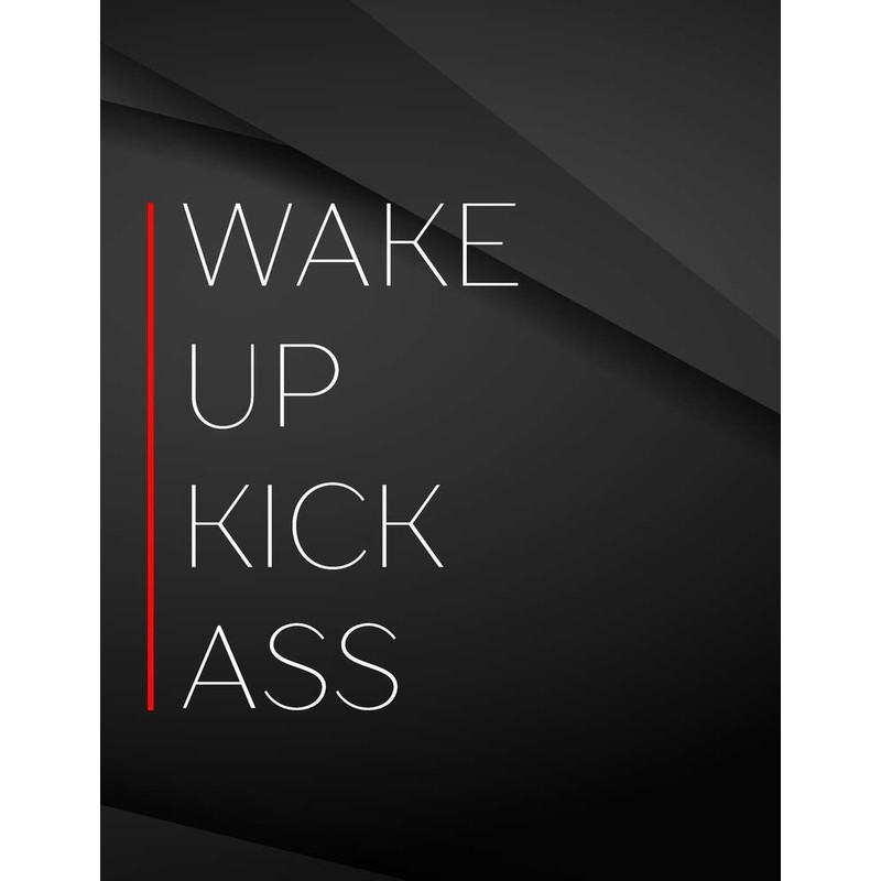 Wake up Kick ass.: Wake up Kick ass Jottings Drawings Black Background White Text Design Unlined Notebook - Large 8.5 x 11 inches - 110 Pages notebooks and journals, for Minimal Design, Sketching