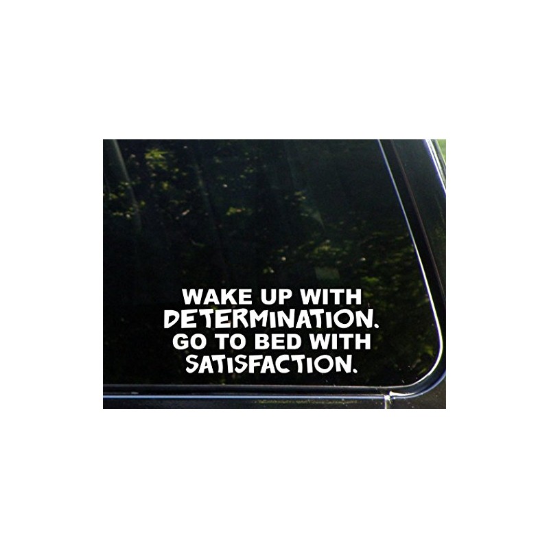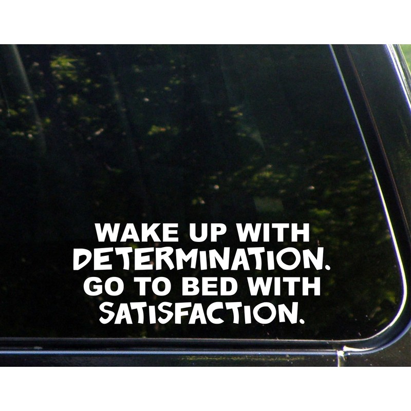 Wake Up with Determination Go to Bed with Satisfaction - 9" x 3-1/2" - Vinyl Die Cut Decal/Bumper Sticker for Windows, Cars, Trucks, Laptops, Etc.