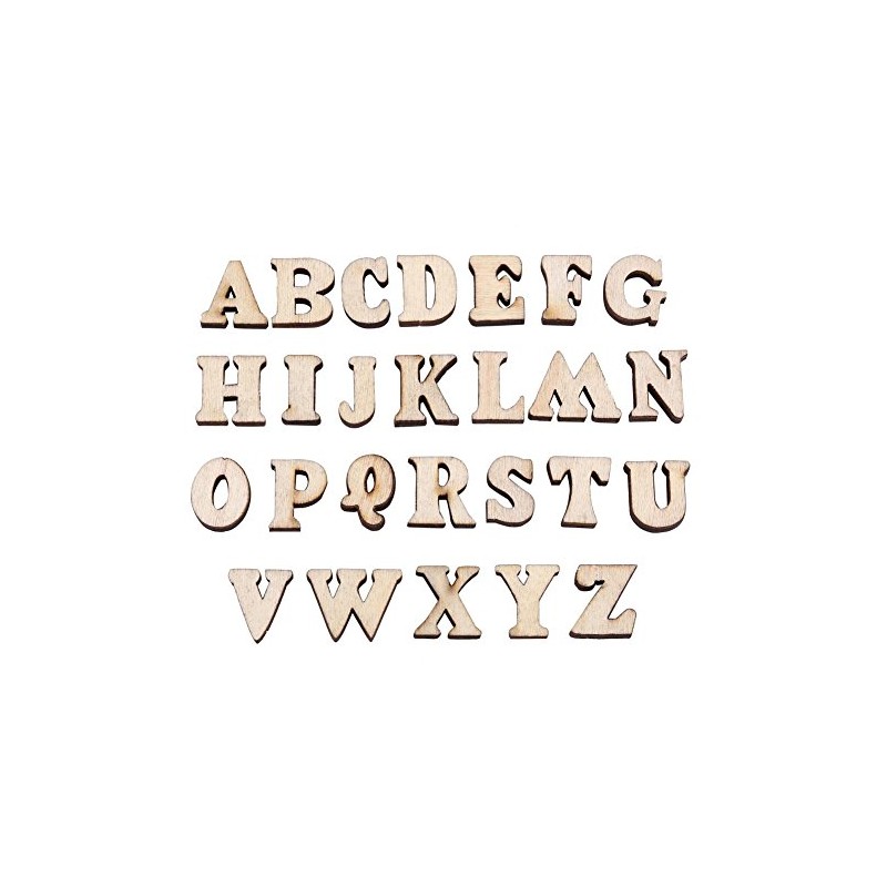 Wakects Alphabet Number Learning Tool, 200 Small Wooden Numbers, Smooth Capital Letters, Natural Wood Colour, for Crafts, Decoration for Scrapbooking, Album, 10 mm to 15 mm (English Letter)