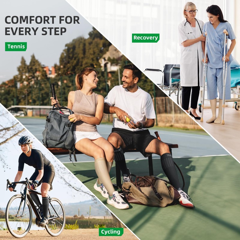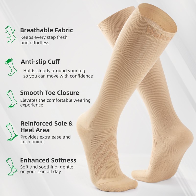 • Gentle Support for You: These compression socks for women offer soft, steady support for everyday comfort; whether you're enjoying a walk, relaxing at home, or staying active throughout the day, the snug-yet-gentle fit helps keep your legs feeling refreshed and energized — a perfect companion for daily routines and recovery time