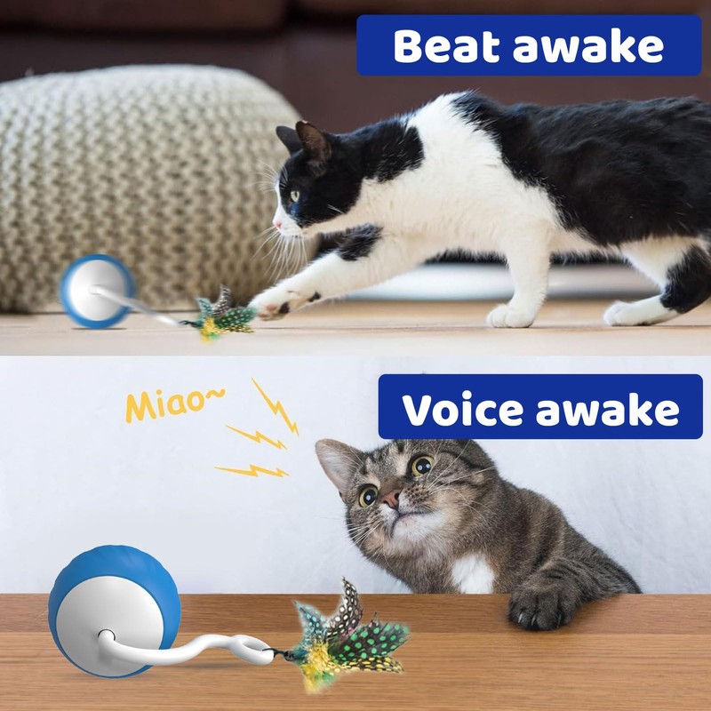 • 【Automatic cat toy】Sound and touch wake up. The smart cat toy will stop working after three minutes of operation, and the toy ball will be reawakened when the cat touch or make a sound. If you don't know where it is, you can find it by making some noise, very interesting