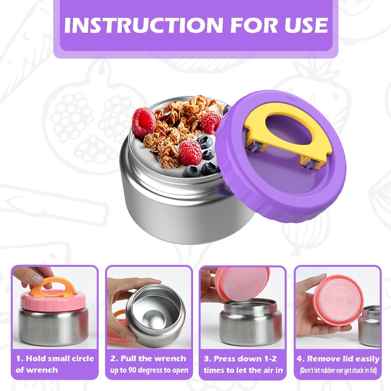 - Leak-Proof Technology: The elastic sealing ring and snap lid work together well to form an airtight and leak-proof seal. The high-density PP-5 plastic makes it sturdy and leak-proof. Microwave Safe: about 210°F, ≤3 mins, Don't put stainless steel insulated food jar in microwave. Freezer Safe: ≧4°F,. Hand washing is recommended for the lid to avoid deformation caused by high temperature and pressure.