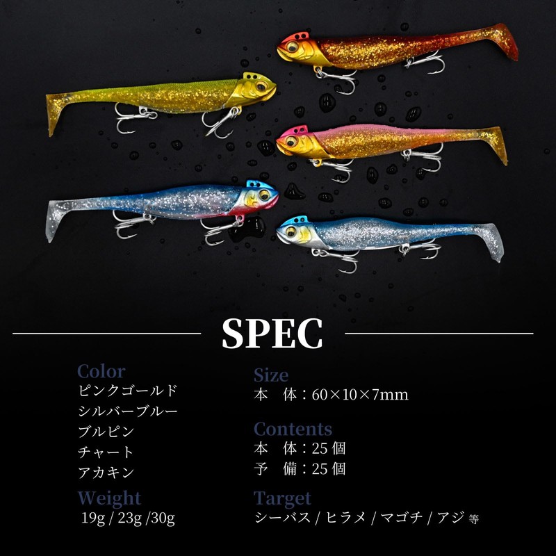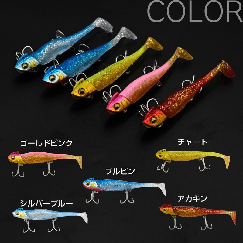 - 重さ23g カラー:ゴールドピンク・シルバーブルー・ブルピン・チャート・アカキン 予備ワーム各色1つずつ