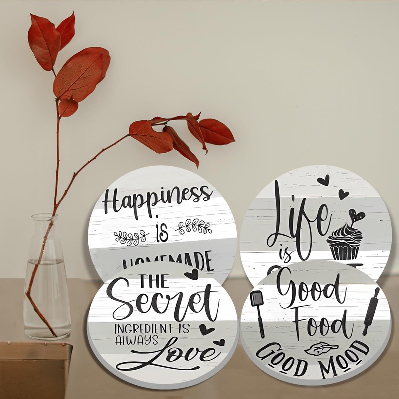 Walarky Farmhouse Rustic White Round Metal Hob Covers Set of 4 Stove Cooker Hob Covers for Cookers Gas Stove Protector Cookware Accessories Modern Cooktop Decor
