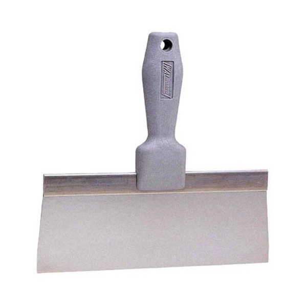 The Wallboard Yellow handle 10" Taping Knife features a textured molded finished handle for non-slipping and comfort. Also a stainless steel blade with long lasting memory-hardness - Does not rust. Generally, preferred by painters due to non-rust feature of stainless blade. Blade size is one application process in feathering of joint. General use of the taping knife is to apply a light coat of mud over joint utilizing paper or mesh tape.