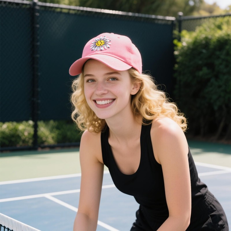 Waldeal Pickleball Hat for Women, Ajustable Embroidered Daisy Washed Denim Baseball Cap, Light Pink