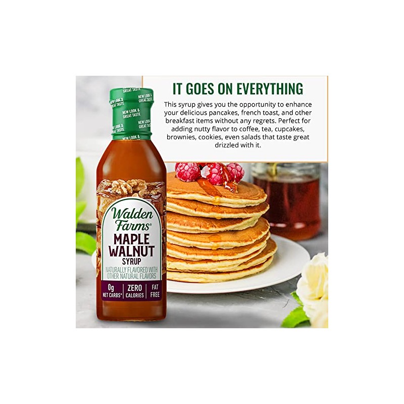 Walden Farms Maple Walnut Syrup 12 oz, Sweet Syrup - Near Zero Fat, Sugar and Calorie - For Pancakes, Waffles, French Toast, Coffee, Tea, Desserts, Snacks, Appetizers and Many More