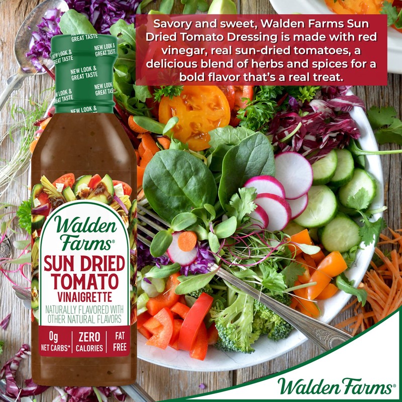 Walden Farms Sun-Dried Tomato Vinaigrette Dressing, 12 oz. Bottle, Fresh Tangy Salad Topping, Sugar Free and 0g Net Carbs Condiment, Keto and Kosher, Natural Flavors