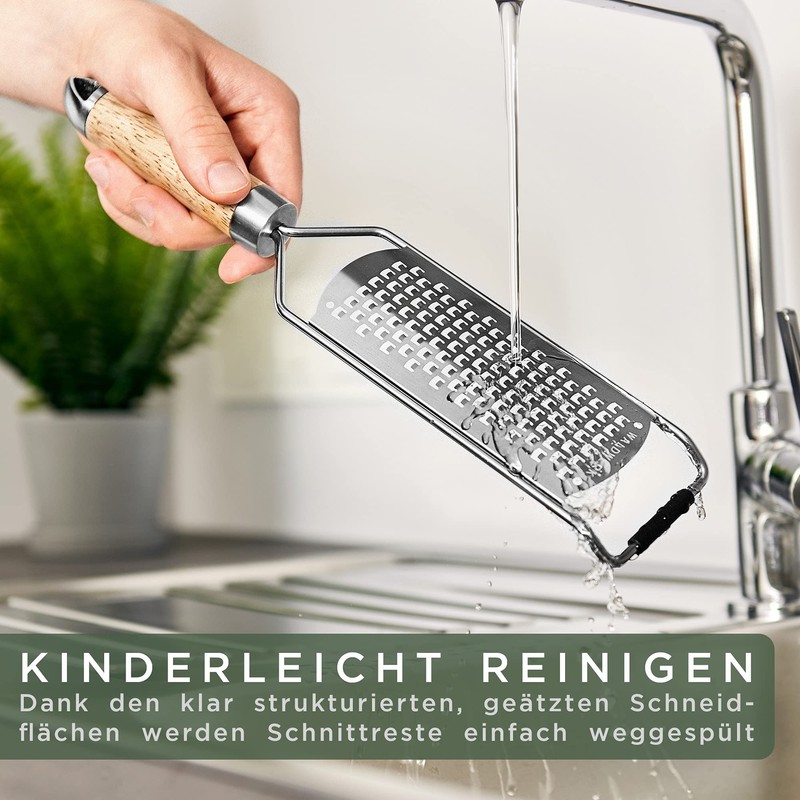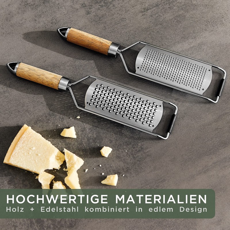 - Fine zester and coarse rasp – as a perfect addition to your kitchen. Refine your food with delicate citrus zests or coarse cheese flakes. With this set you are optimally equipped.