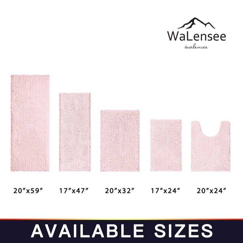 Walensee Bathroom Rug 2 Pieces Set Non Slip Bath Mat (20"x32" Plus 20"x24" U Blush) Water Absorbent Super Soft Shaggy Chenille Machine Washable Dry Extra Thick Perfect Carpet for Shower Floor