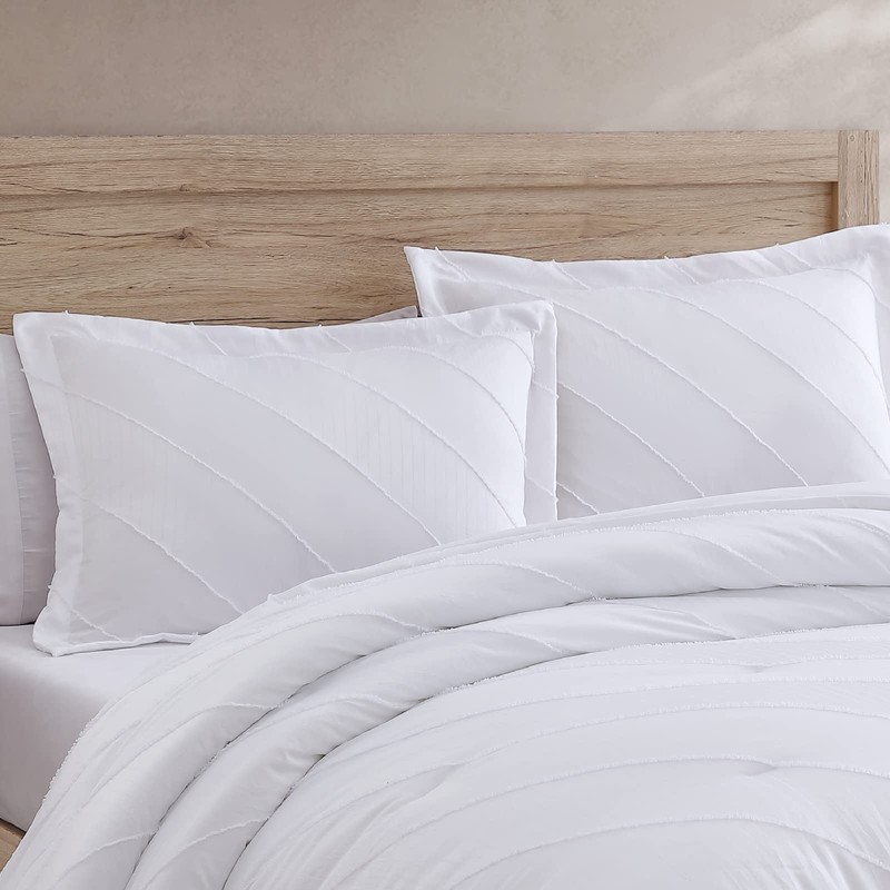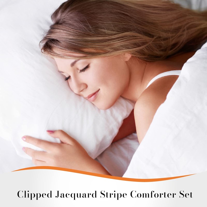 Walensee Twin Comforter Set Clipped Jacquard Stripe 100% Polyester Soft Washa...