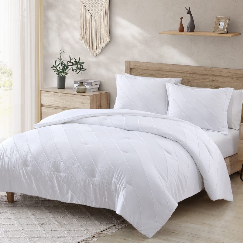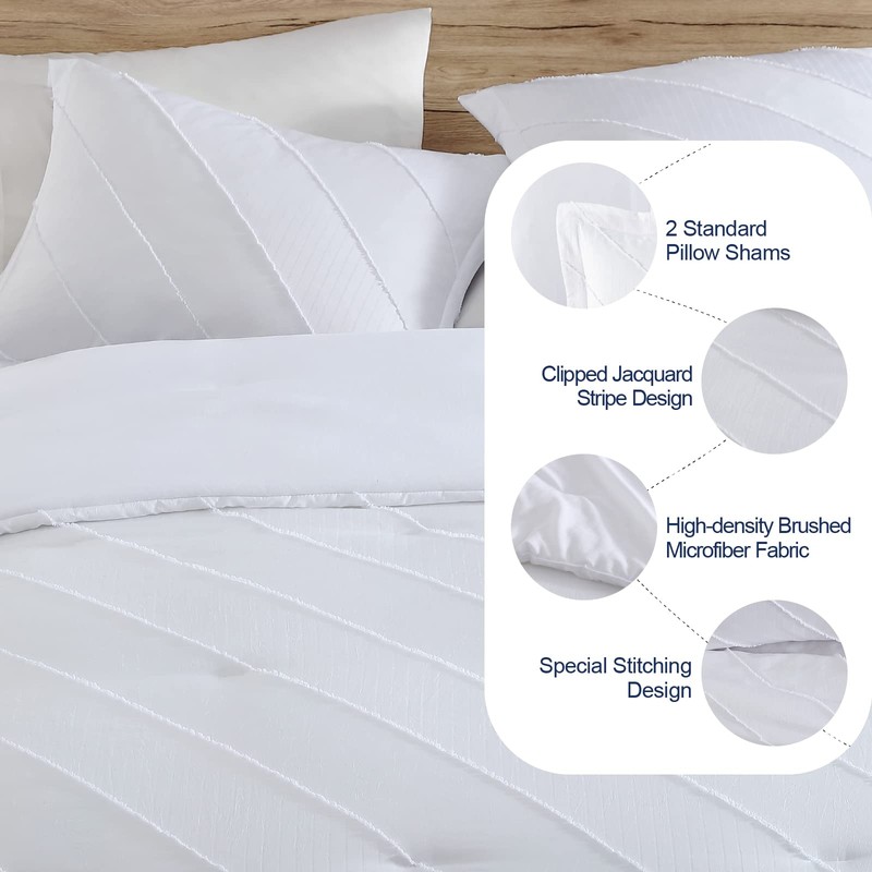 Walensee Twin Comforter Set Clipped Jacquard Stripe 100% Polyester Soft Washable Microfiber Bed Comforters with 1 Pillowsham All Season Lightweight Cozy Bedding Comforter Sets 2 Pieces 68"x90" White
