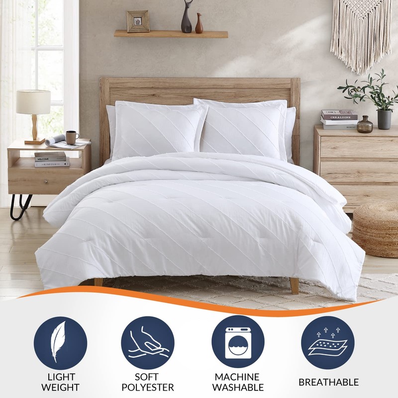 • LIGHTWEIGHT and SOFT: The well-finished fabric material provides smooth and comfortable touching. Filled with 300 GSM 100% polyester, is made of high quality material which makes the filling is more soft and fluffy, provides exceptional warmth and cozy, it also offers feeling of cloud-like and breathability which keeps you warm for all seasons. The special stitching design prevents shifting and clumping of the filling in the bedding comforter set, improving its durability for long-term use.