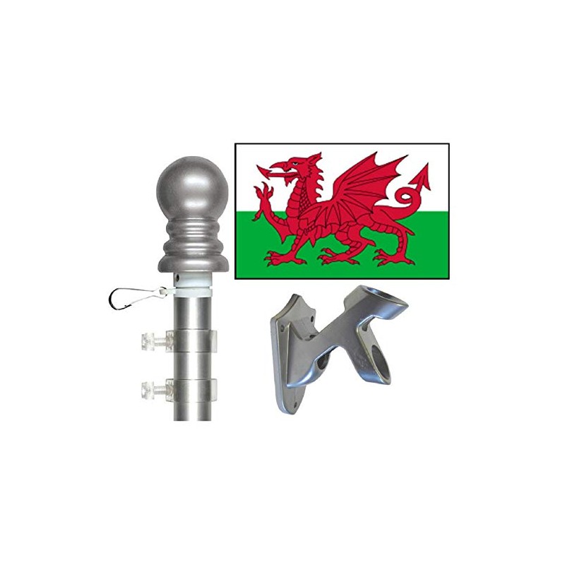 Wales Flag and Flagpole Set, Choose from Over 100 World and International 3'x5' Flags and Flagpoles, Includes Welsh Flag, Pole and Bracket