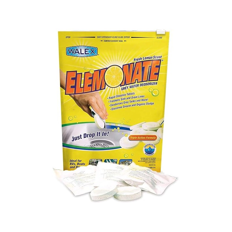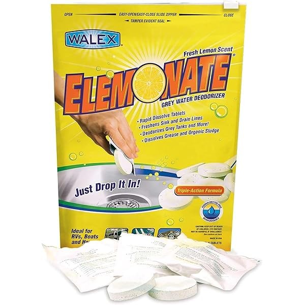Walex Elemonate Grey Water Tank Deodorizer & Freshener - Freshens Sink & Drain Lines, Rapid Dissolving Drop-In Tablets, Ideal for RV's, Boats & Homes, Easy to Use - Fresh Lemon Scent, 5 Pack