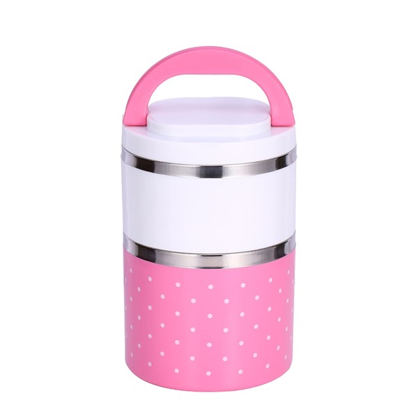 Walfront Stainless Steel Insulation Thermo Food Box 2 Layer Thermal Lunch Box Stackable Lunchbox Containers with Double Handles