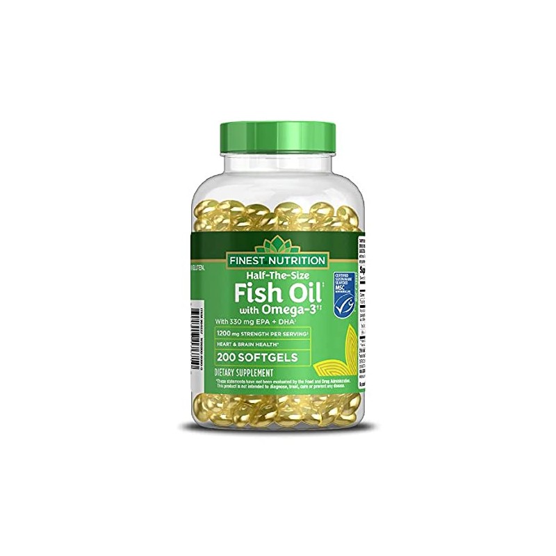 • Half-sized fish oil softgels. Supports heart & vascular health. USA wild caught Alaskan. Half-sized fish oil softgels. Supports heart & vascular health USA Wild Caught Alaskan Fish. With 330 mg EPA + DHA. Just ONE small softgel per day. Same omega-3x levels as a 1200 mg fish oil softgel, in a concentrated formula. as concentrated fish oil ethyl esters.