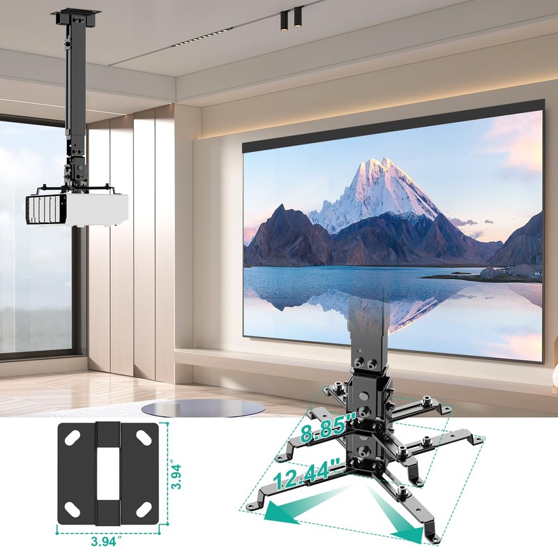 - Compatibility: Universal Projector Mount Bracket for Both Ceiling and Wall Installation. Applicable to mounting holes distance between 8.9’’to 12.4’’