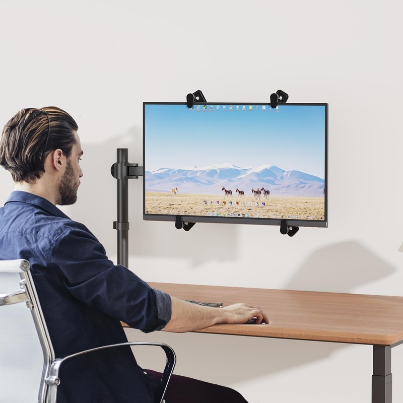 - Compatibility: Fits Non-Mounting Holes Monitors - Designed for screens up to 27”, weighing up to 22lbs, screen thickness of 1” to 2.75”. Two stage locking system adapt to 4” C-clamp and 4” Grommet Base