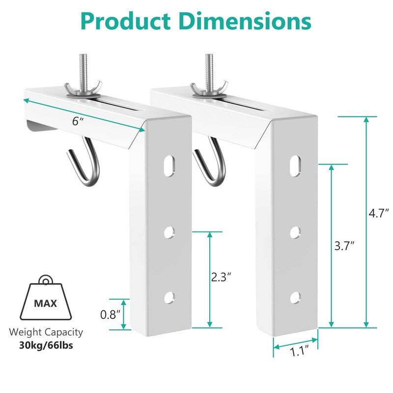 WALI Universal Projector Screen Ceiling Mount, Wall Hanging Mount L-Brackets, 6 inch Adjustable Extension with Hook Kit, Perfect Projector Screen Placement Hold up to 66 lbs (PSM001-W), White