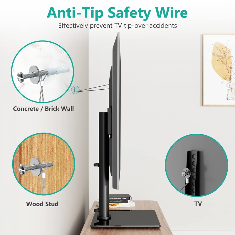 - Anti-Tip Cable: Included be used to connect TV and wall to get your TV mounted more stable.