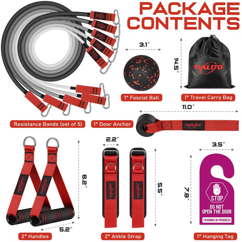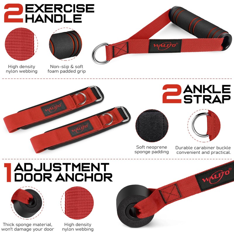 WALITO Resistance Bands Set - Exercise Bands with Handles, Door Anchor, Legs Ankle Straps, for Heavy Resistance Training, Physical Therapy, Muscle Training, Yoga, Home Workouts