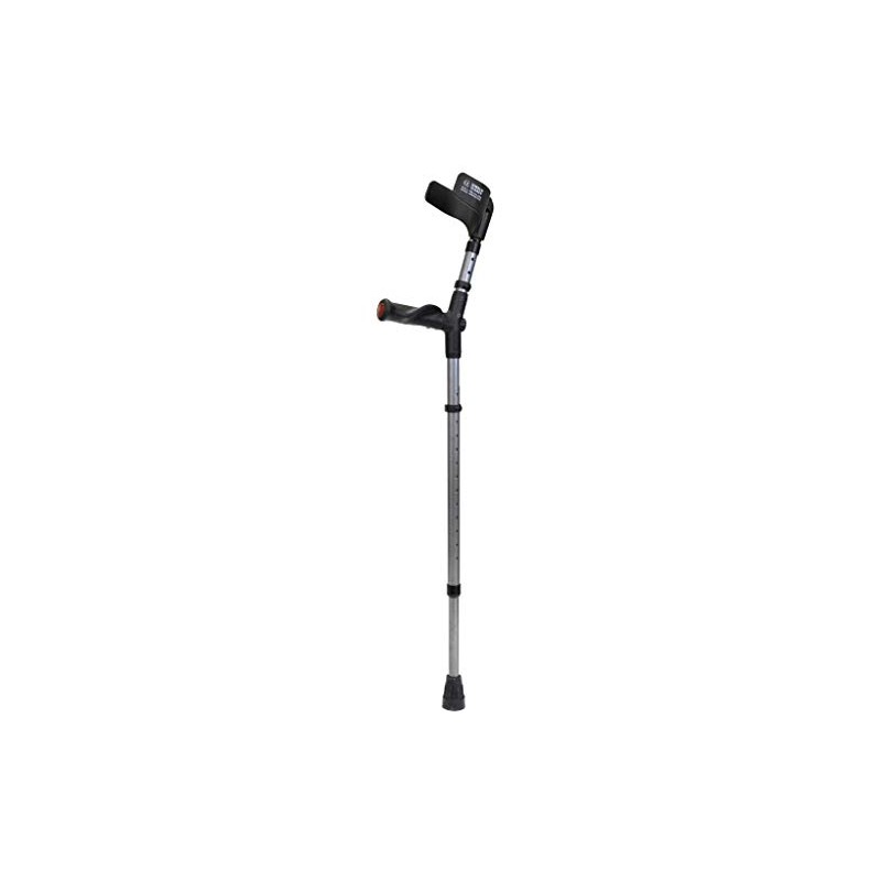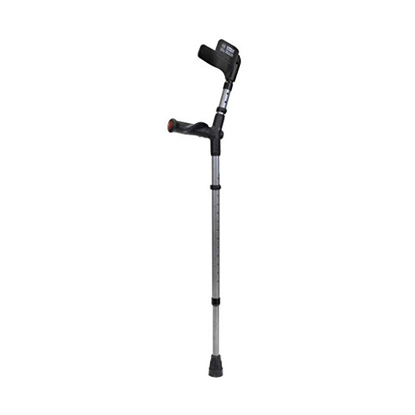 Model 496 Adult Forearm Crutches w/ half cuff and anatomic grip Product Description: Adult forearm crutches w/half cuff and anatomic grip Material Properties: Aluminum Adjustability: Grip to floor , Grip to cuff Grip Properties: Soft , Rubber , Anatomic Cuff Type: Half cuff Weight (each): 26.0 oz (737.1 grs.) Warranty: 1-year limited Medicare HCPCS code: E0110 Shipping weight: 3.0 lbs. (dimensional weight: 13 lbs.) Brand: Walk Easy Sold as: Pair Max. user weight: 300 lbs. (136 kgs) Approx. user height: 5' to 6'4” (152 to 193 cm) Availability: In stock Product Sizing Size: Adult Cuff diameter: 3¼” Grip length: 4½” Grip diameter: 1?” Grip to floor: 28.5” to 40.3” (72 to 102 cm) Grip to cuff: 8.5” to 10.5” (22 to 27 cm)