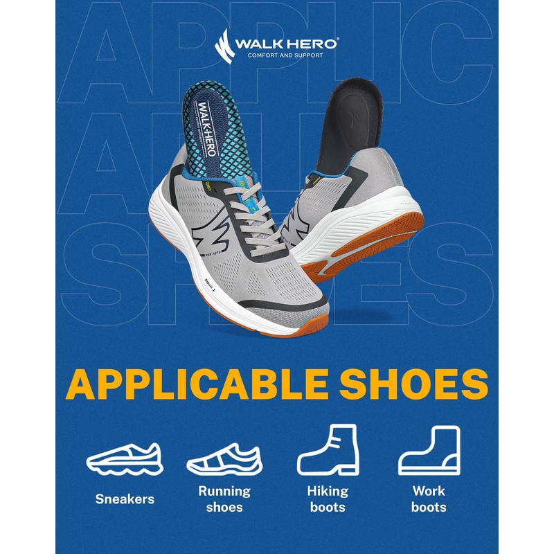 - Foot Pain Relief: When you spend all day on your feet, every slight step of your foot can cause pain due to overtired arches. WALK HERO insoles can relieve Plantar Fasciitis, Achilles Tendonitis, shin splints and other foot, ankle, knee, hip & back pain.