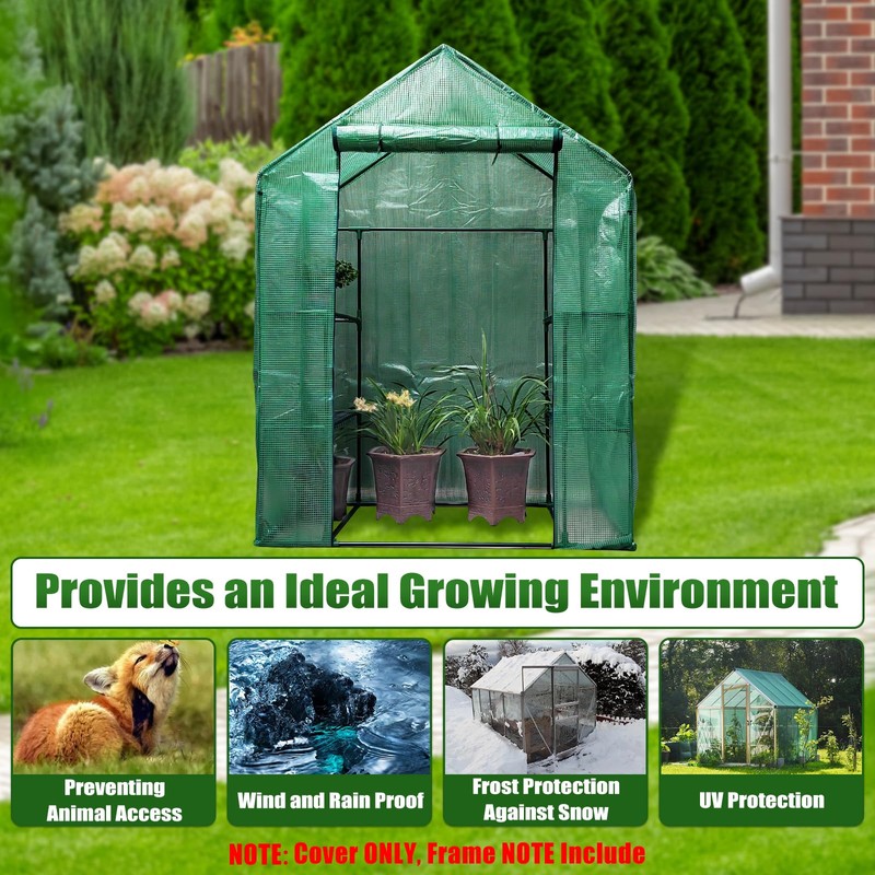 WATERPROOF & UV RESISTANT: This greenhouse replacement cover creates an ideal growing environment for your gardening plants and flowers, protects against UV rays and prevents your plants from receiving their damage and losing their vigor. In case of heavy rain and frost, it protects your flowers from the harsh weather.