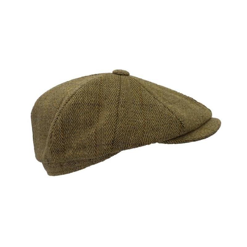 WALKER AND HAWKES - Men's Green Sage Derby Tweed 8-Panel Charlie Baker Boy Style Teflon Coated Cap - Light Sage - L (59cm)