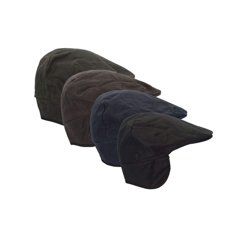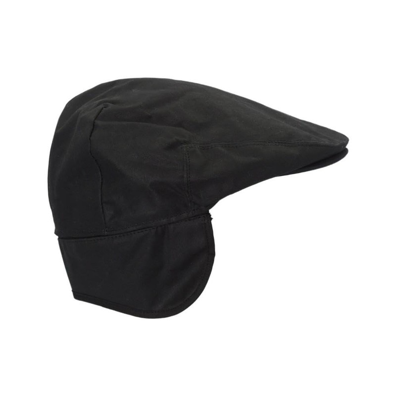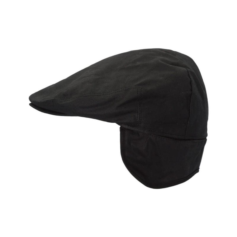 WALKER AND HAWKES - Wax Edmond Flat Cap w/Foldable Ear Flaps - Black - X-Large (60cm)