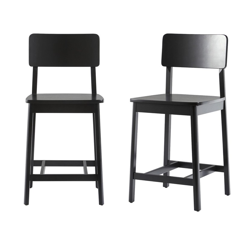 Walker Edison 2-Piece Minimalist Solid Wood Counter Stool, Set of 2, Black