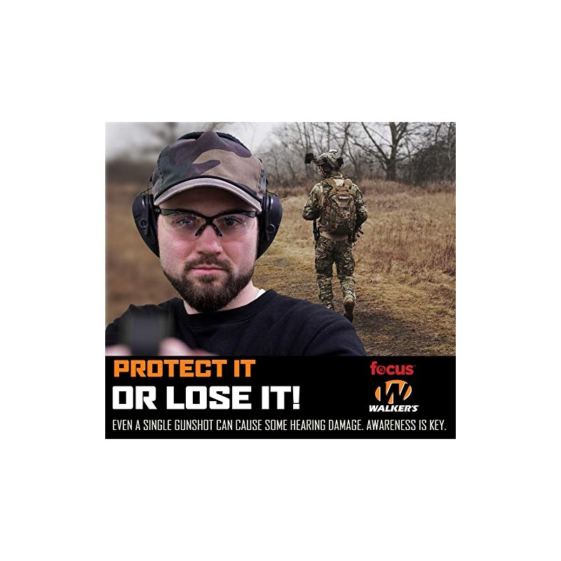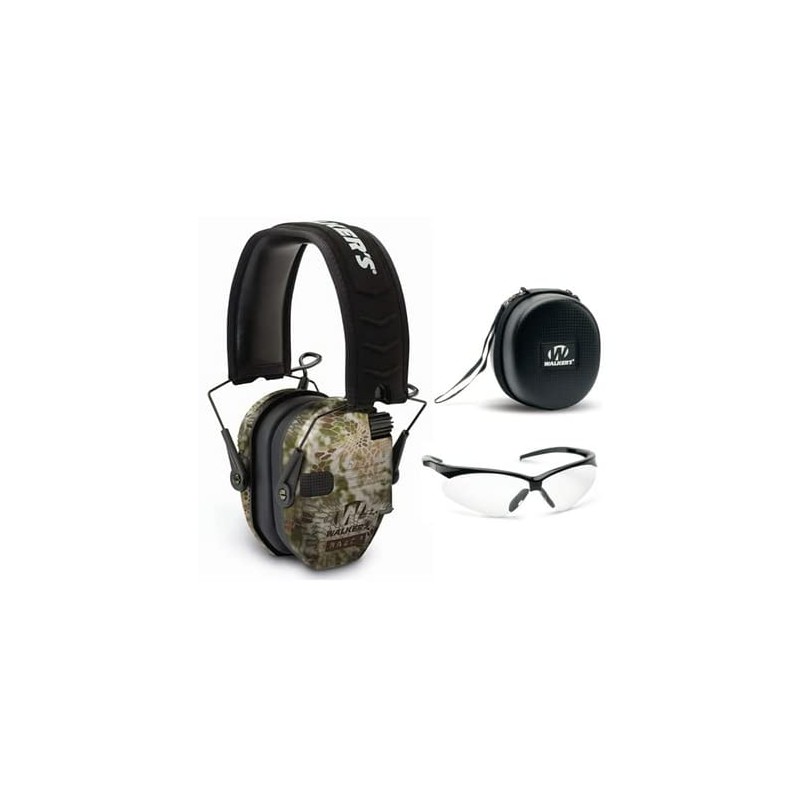• Bundle Includes: Walkers Razor Slim Electronic Muff (Kryptek Camo), Walker's Shooting Hearing Protection Case and Walker's Crosshair Sport Shooting Glasses (Clear)