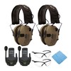 - Bundle Includes: 2 x Walker's Razor Slim Electronic Shooting Hearing Protection Muff (American Flag Distressed, Tan), 2 x Walker's Razor Tactical/Hunting Walkie Talkie Attachment, 2 x Walker's Crosshair Sport Shooting Glasses (Clear) and High-Quality Microfiber Cleaning Cloth