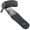 Walker & Williams CVG-WL-B Hand Carved Black And Tan Howling Timber Wolf On Black Leather Guitar Strap
