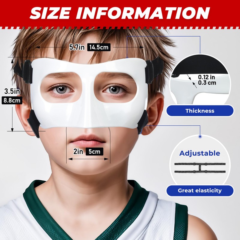 - Suitable for basketball, football, baseball, volleyball, Soccer and any other sport that may lead to facial injuries.
