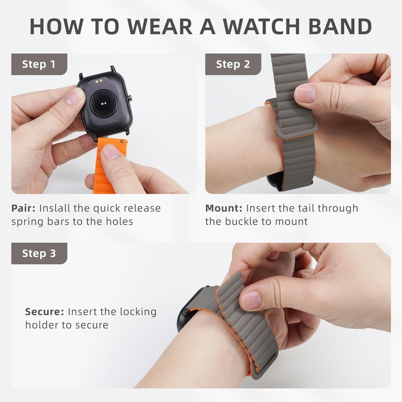 WalkerFit Smart watch band Magnet 20mm, Orange and Gray